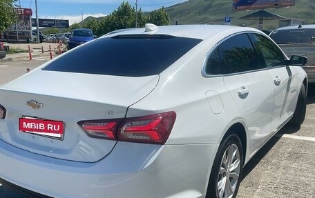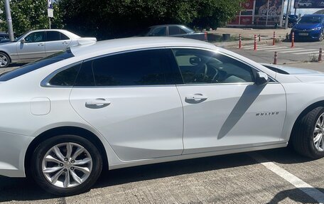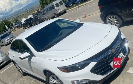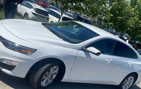 Chevrolet Malibu белого цвета, 2020 года выпуска,, первый владелец в ПТС, объем двигателя - 1,5 л, мощность - 169 л.с., двигатель бензиновый, коробка автомат, привод передний. В автомобиле кожаный салон, электрические зеркала, систе...
